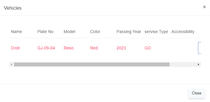 5.Assign vehicle- Admin can see the detail of the vehicle assigned to the driver along with their document