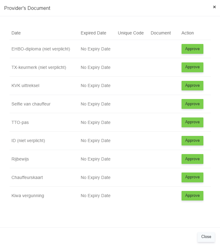 - Document Status- Admin can view the Approved and Rejected documents of the driver in this list.