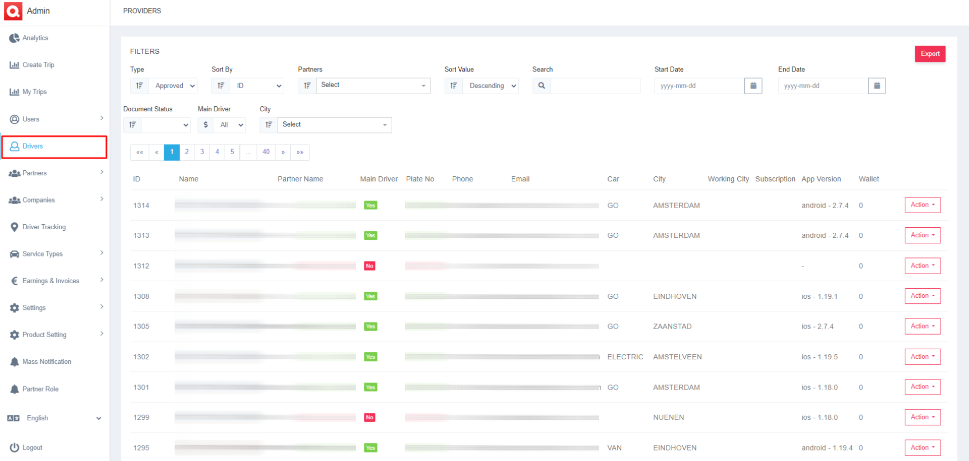 - Type- View the Online, Approved, or Blocked Drivers.